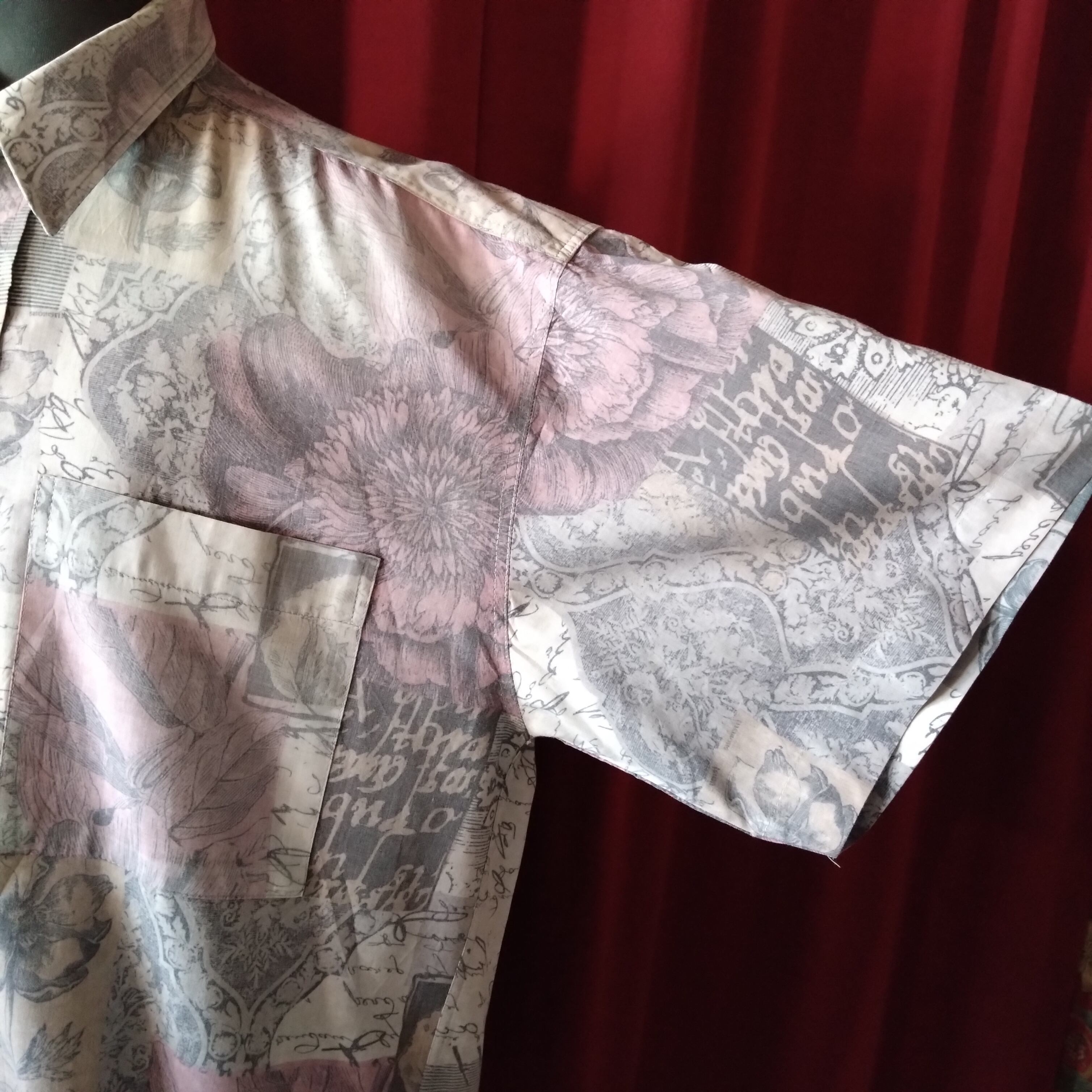 植物図鑑などのコラージュのような柄が素敵なプリントシャツ。