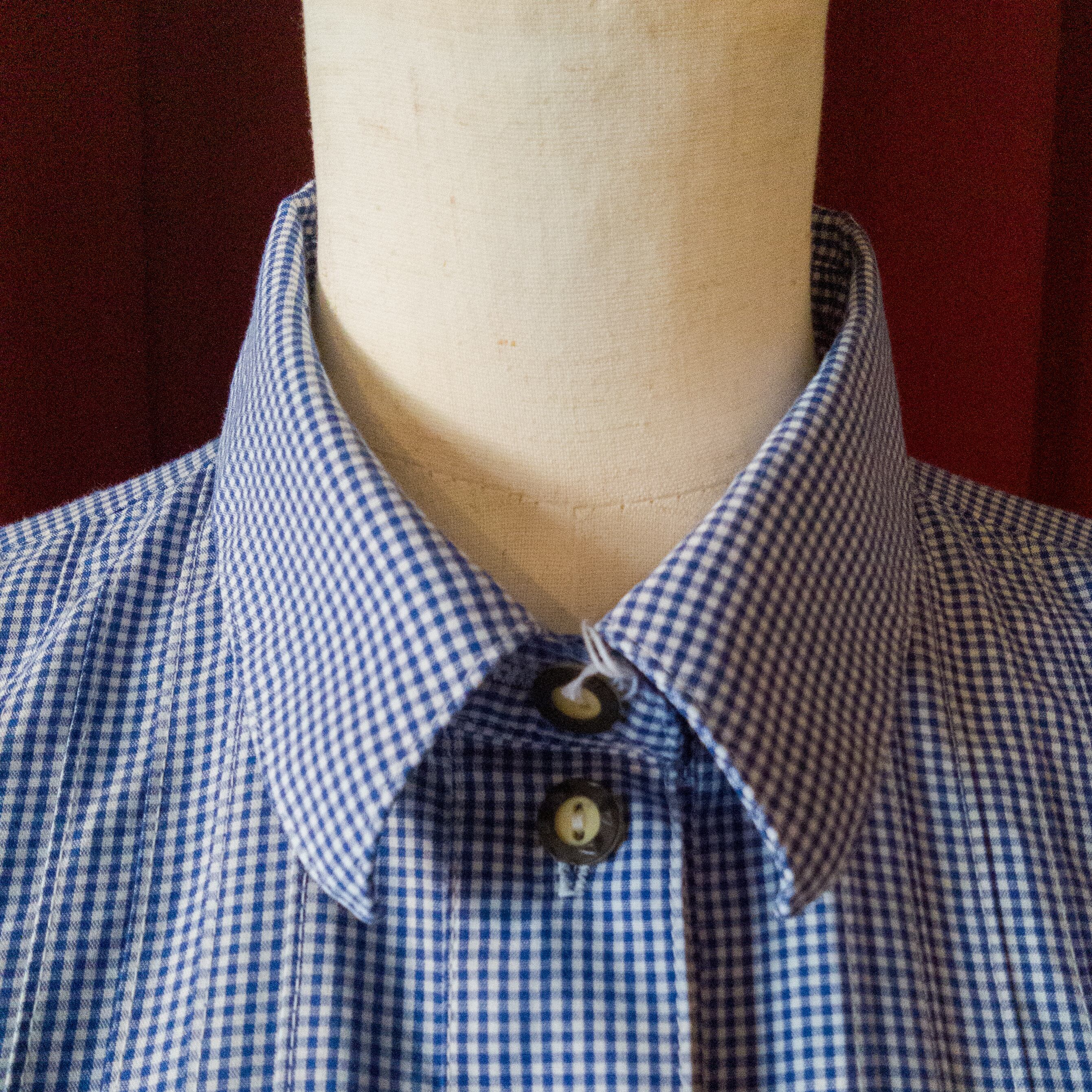ブルーのギンガムチェックでタウンユースに使いやすいシャツです。