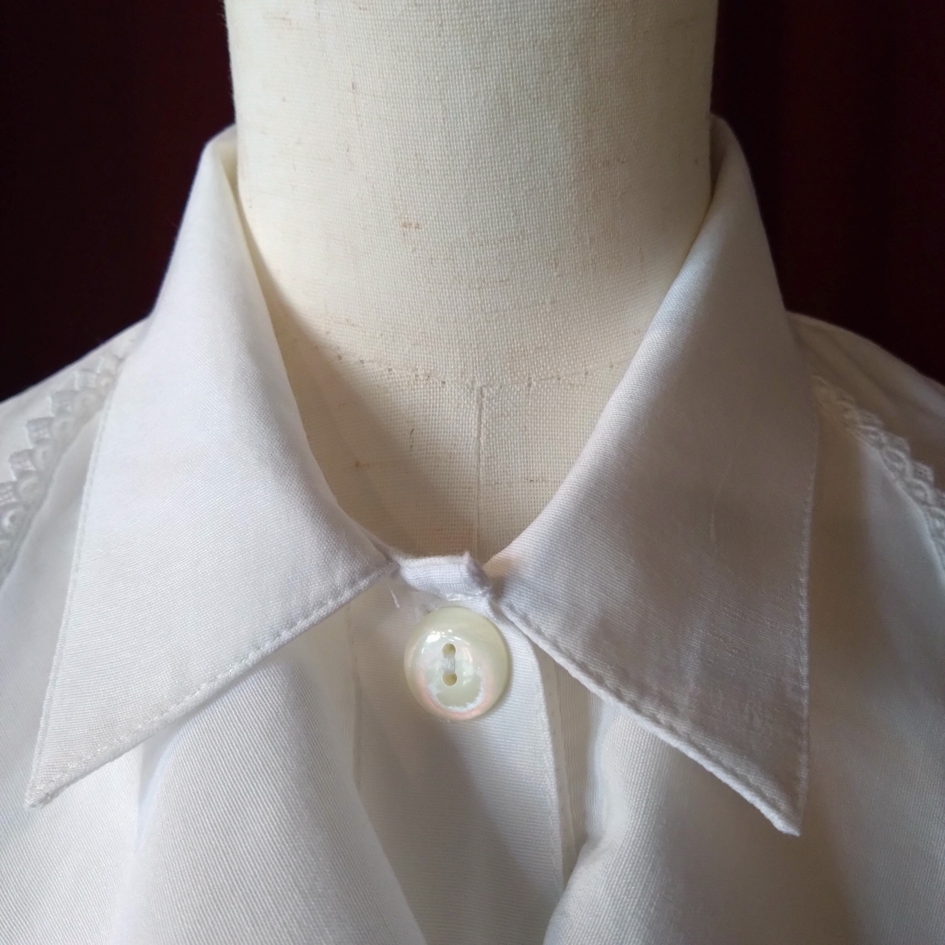 前身頃のラッフルがフォーマルにもなるホワイトブラウス。