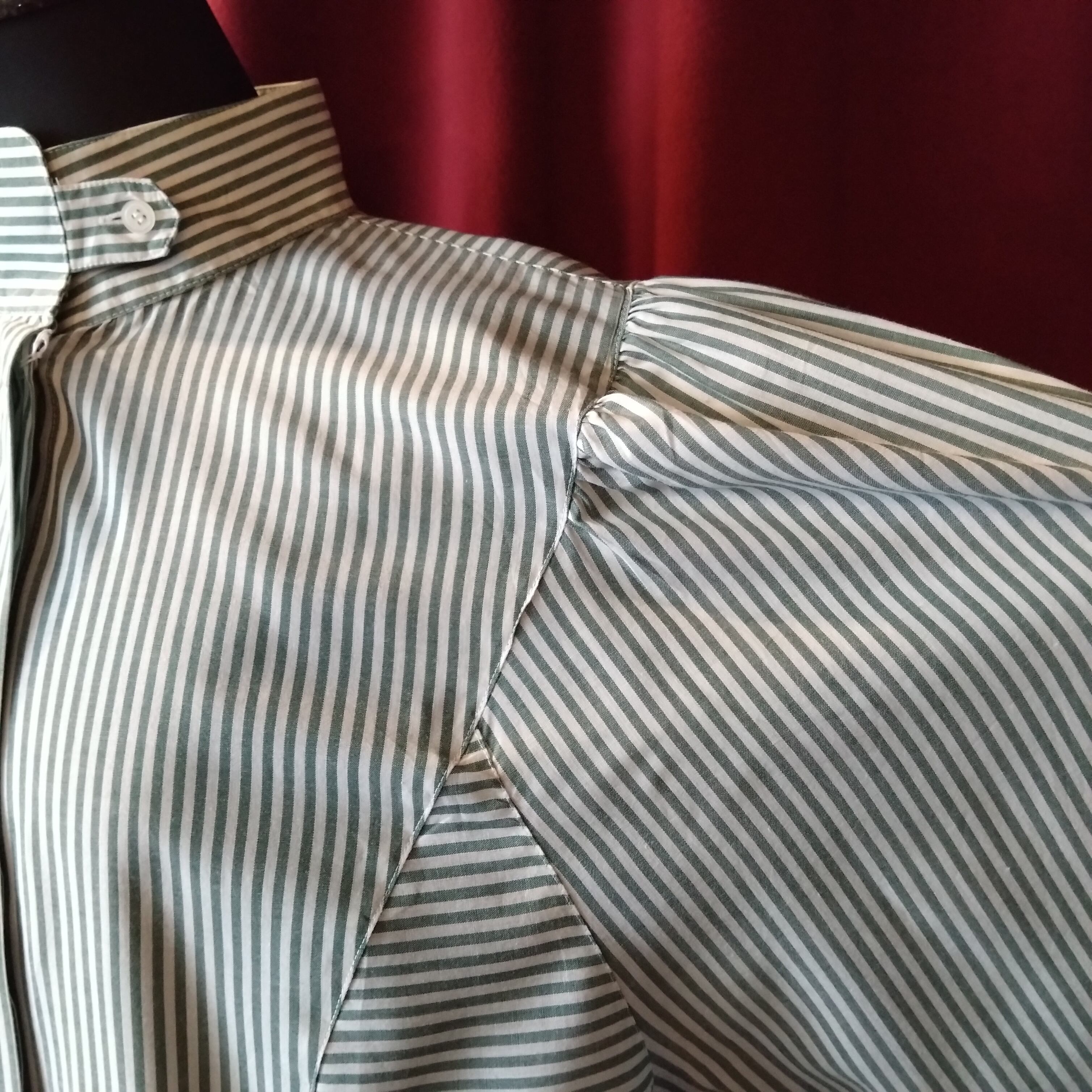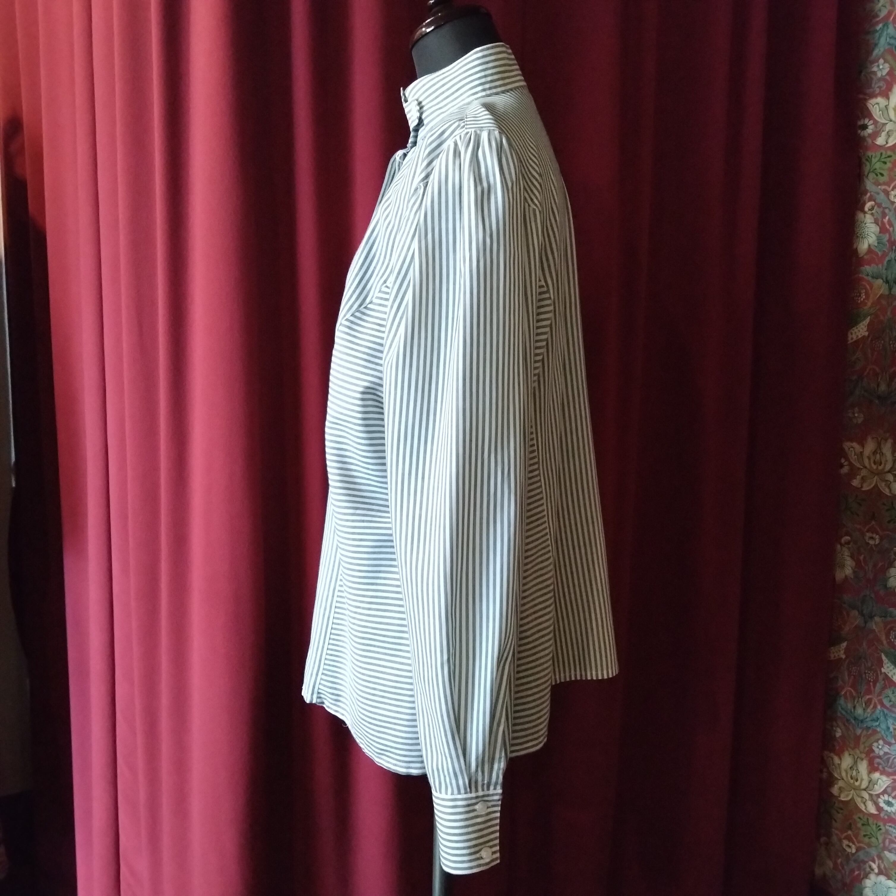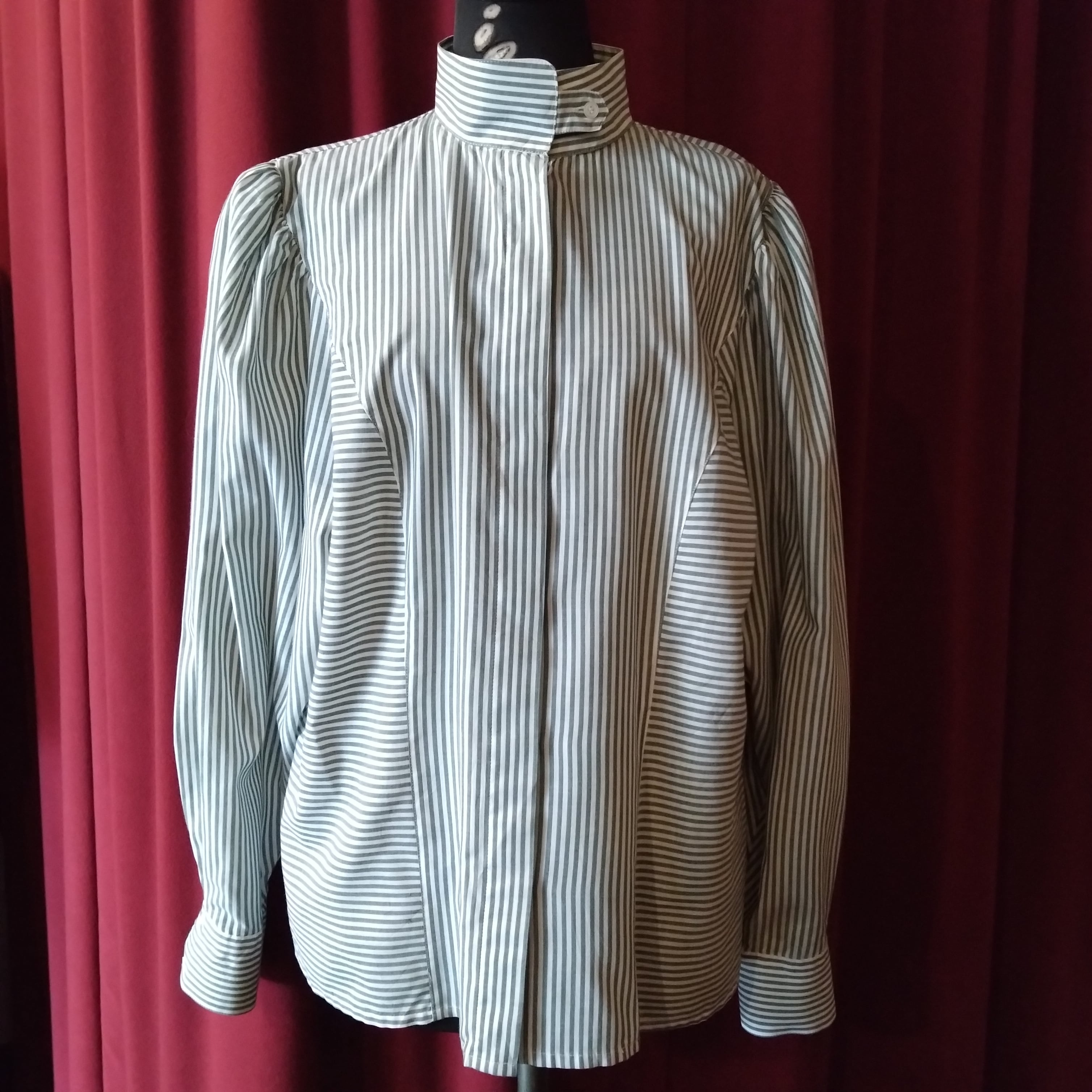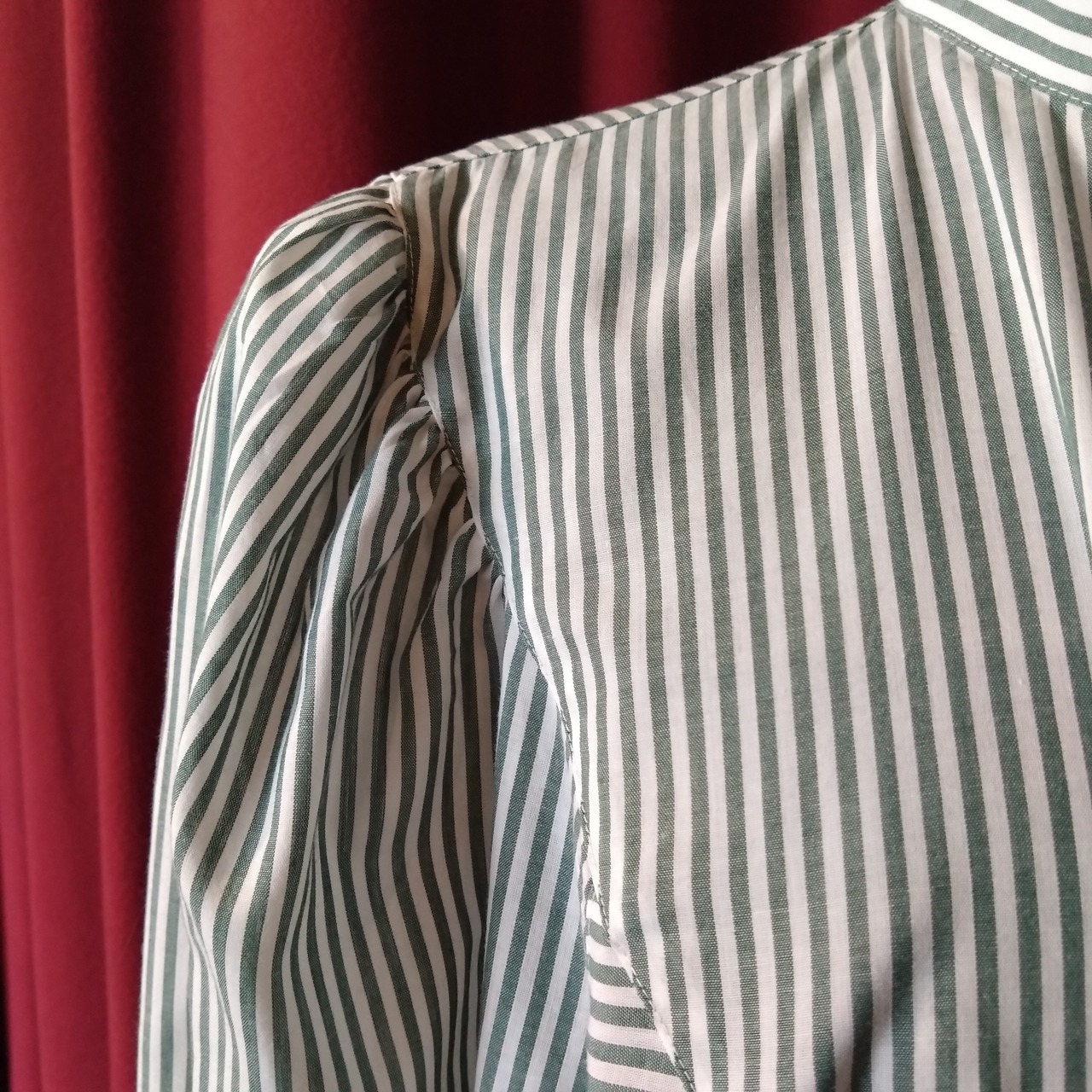 高さのあるスタンドネックと通常より長めの袖口がちょっとロマンティックな雰囲気。