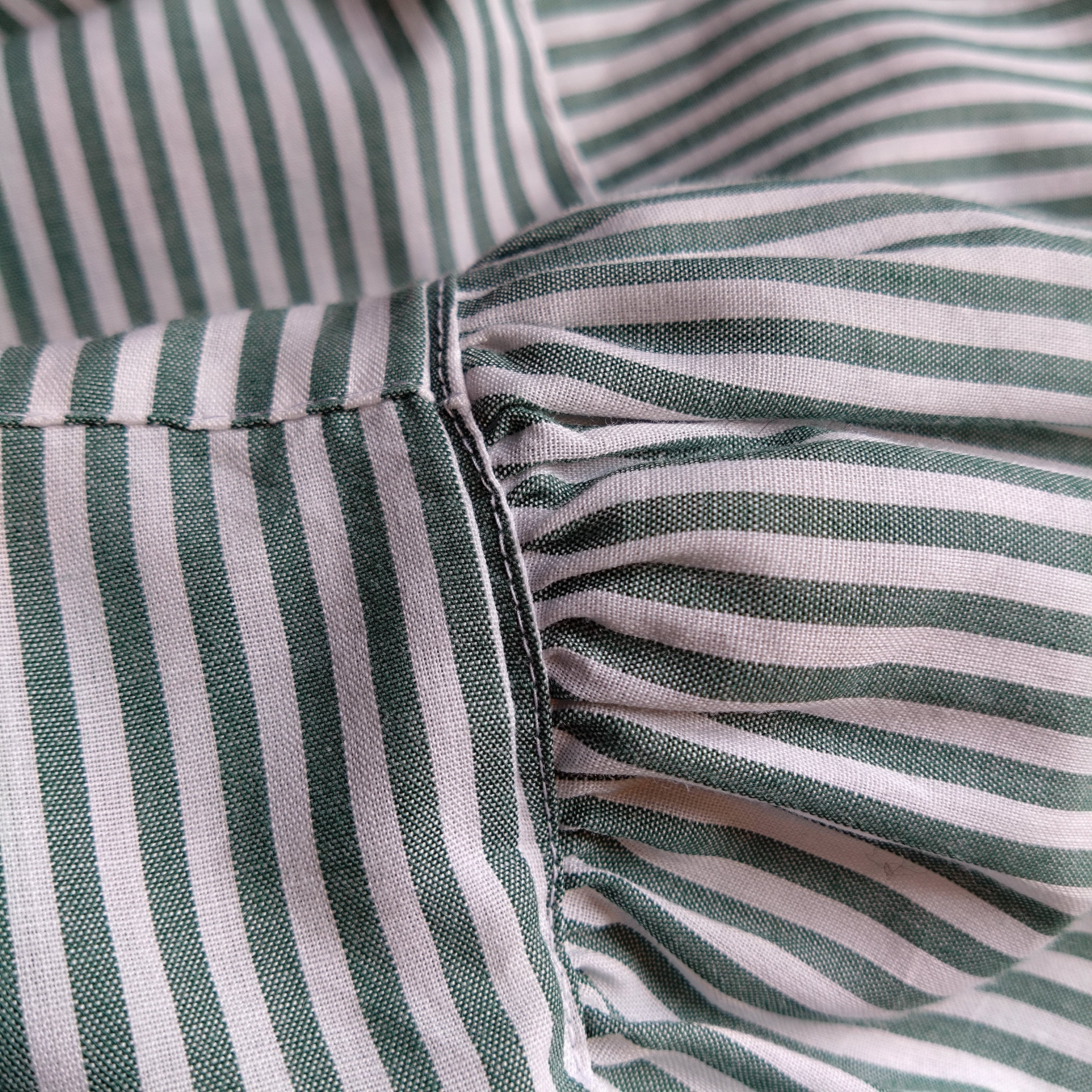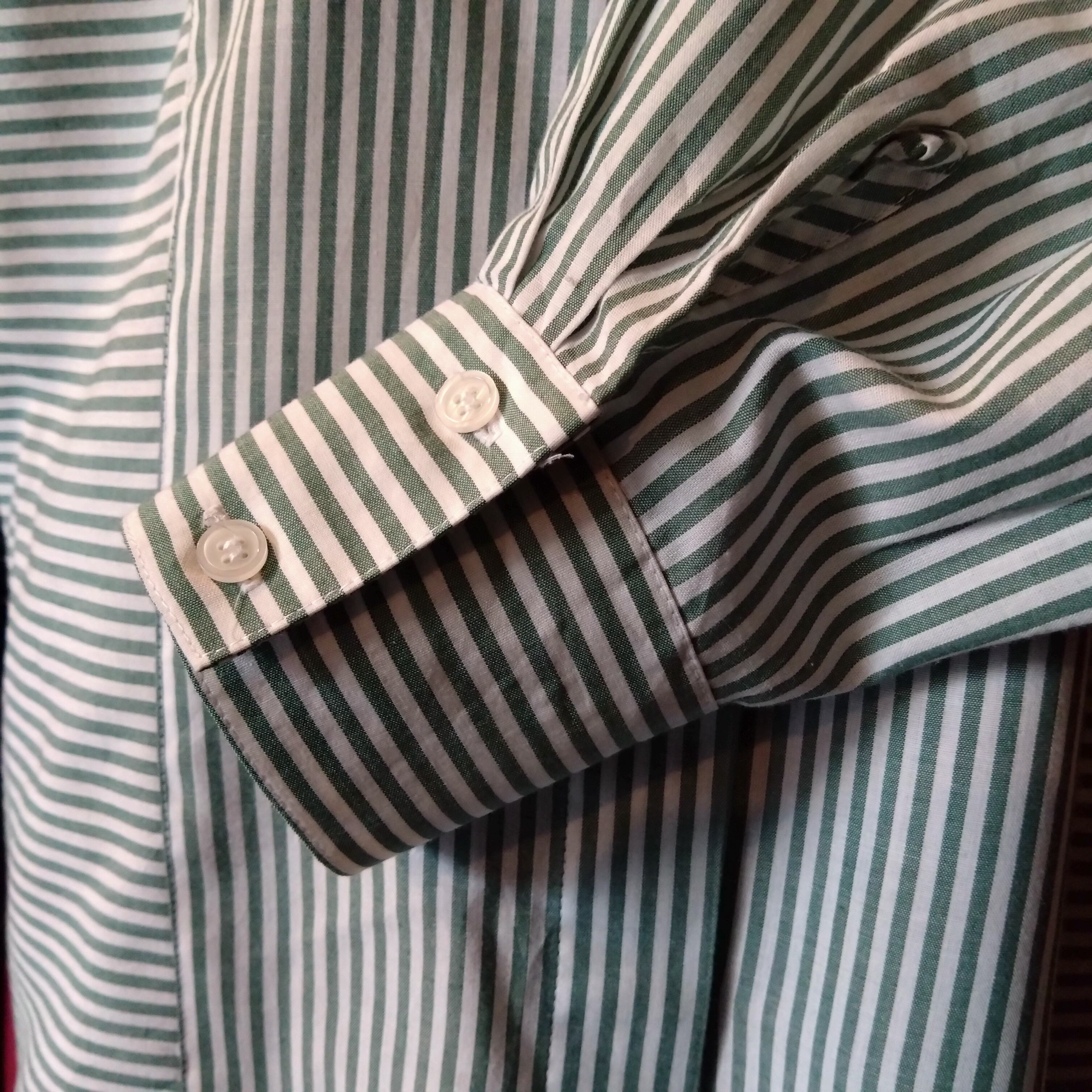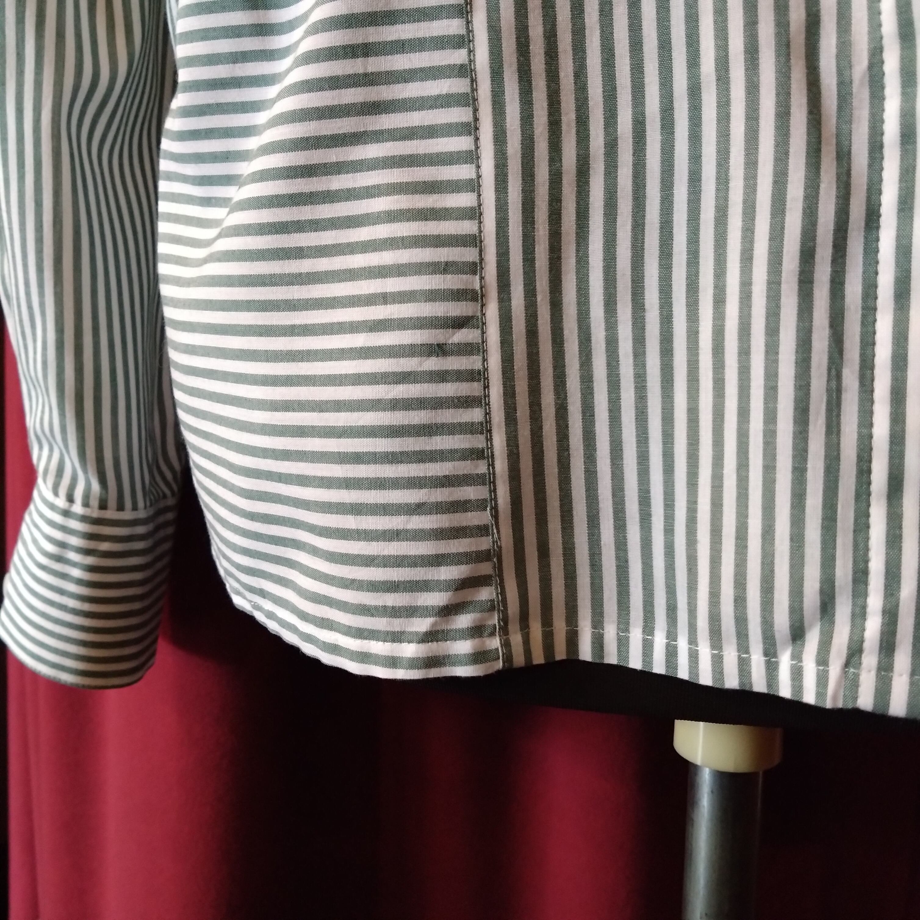 オリーブグリーンストライプで初夏の爽やかさを。