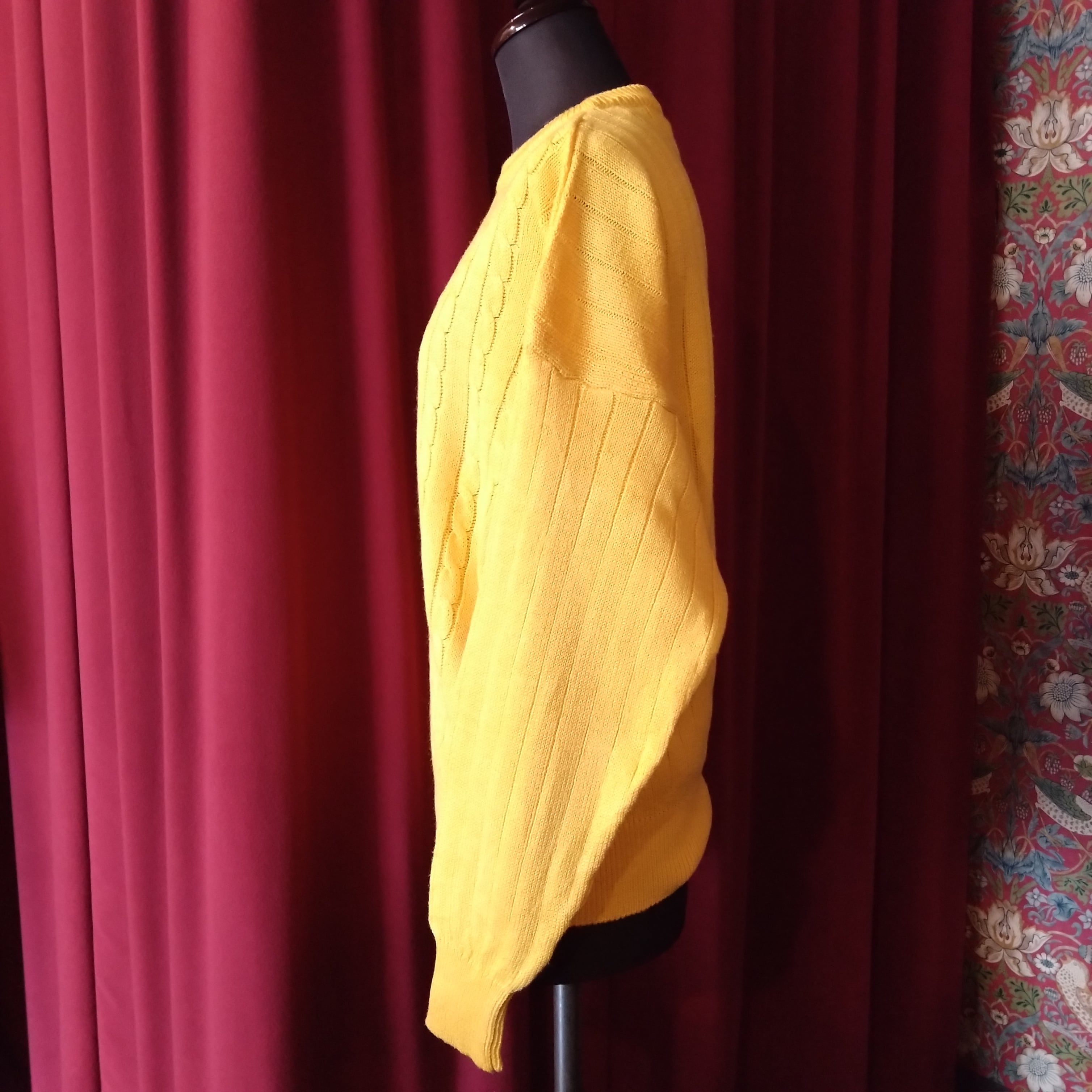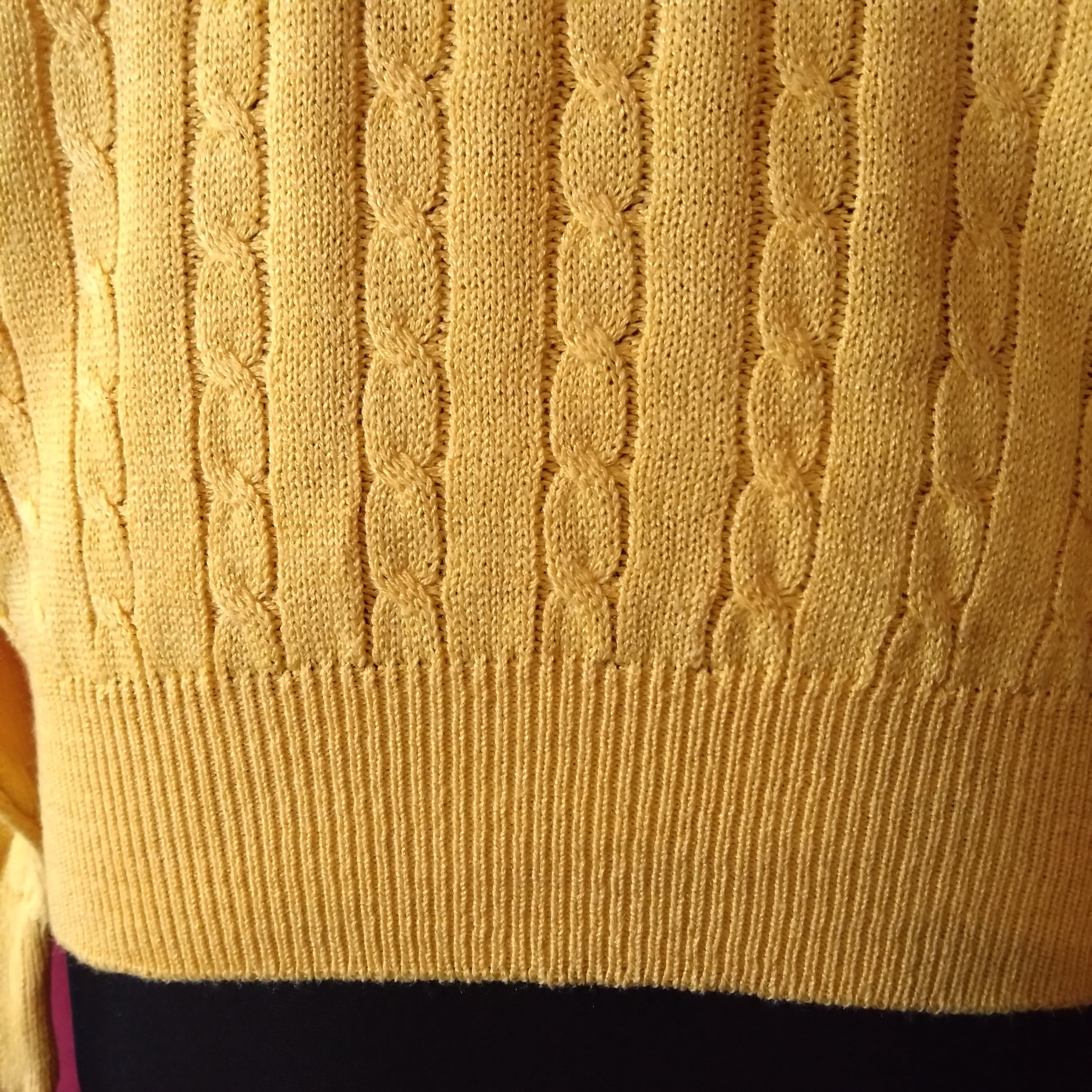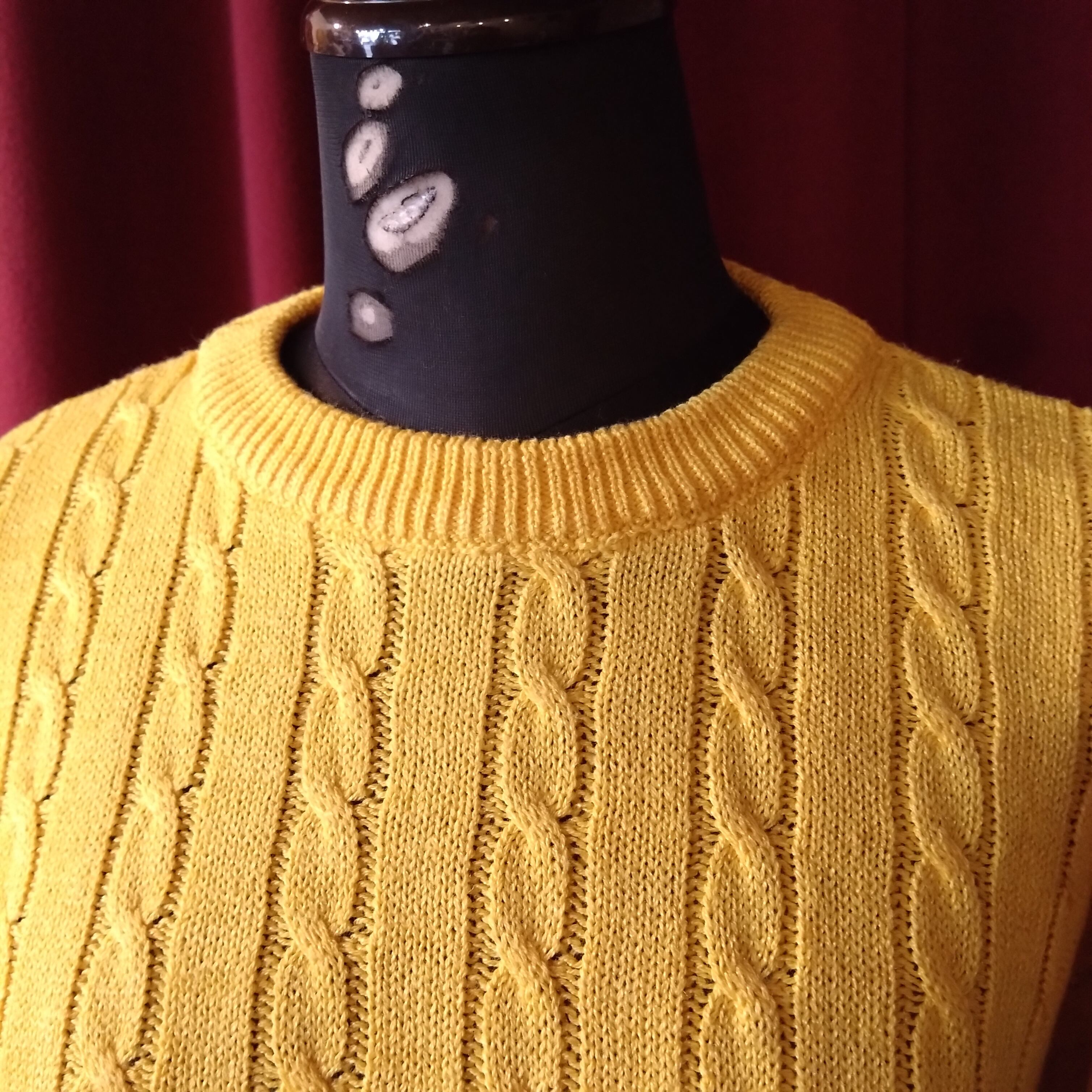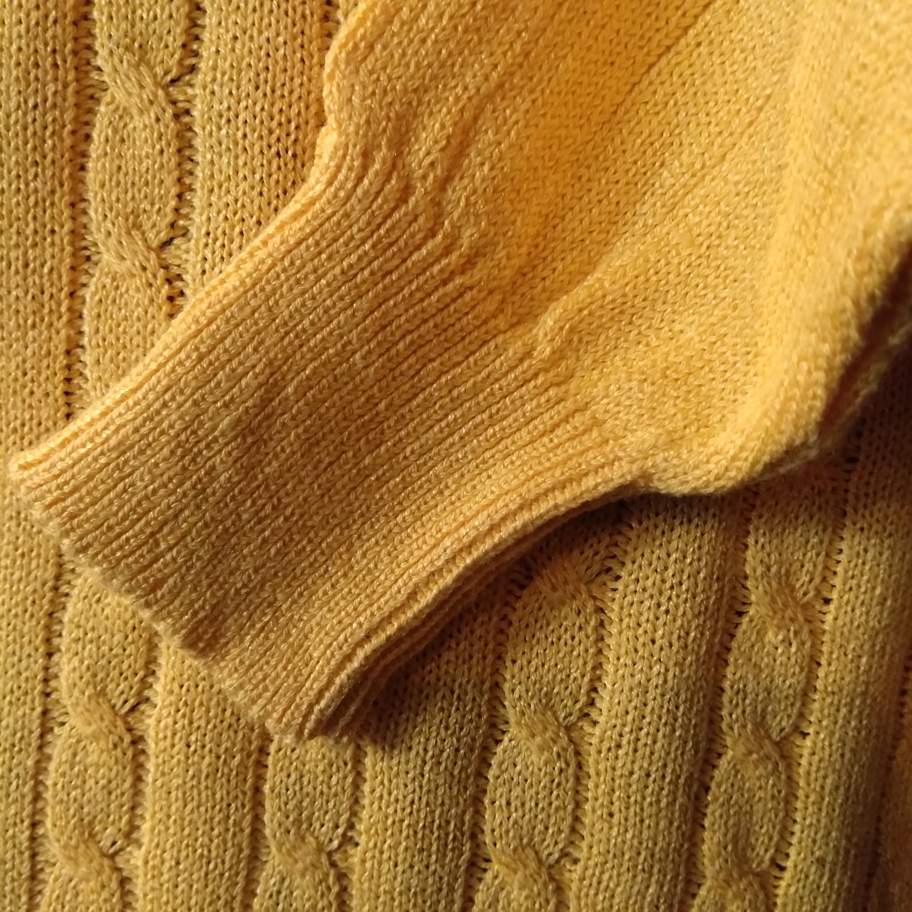 鮮やかできれいなイエローが明るい気持ちにさせてくれそうな春だけじゃなく着たいケーブル編みニット。