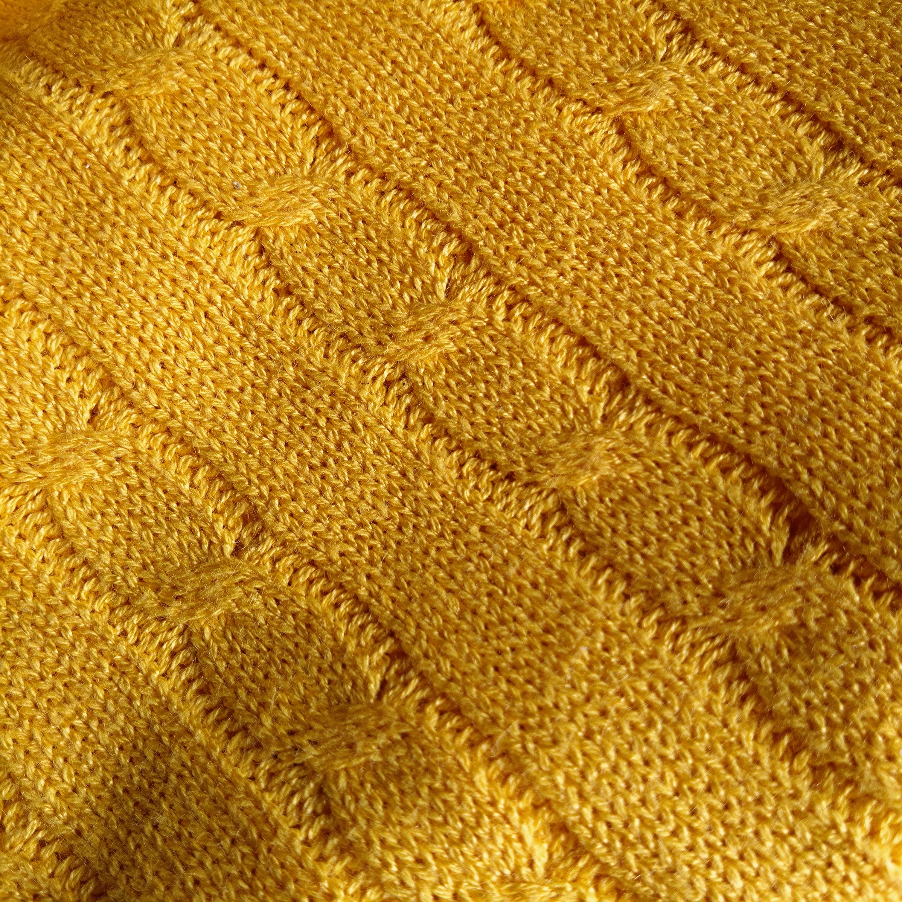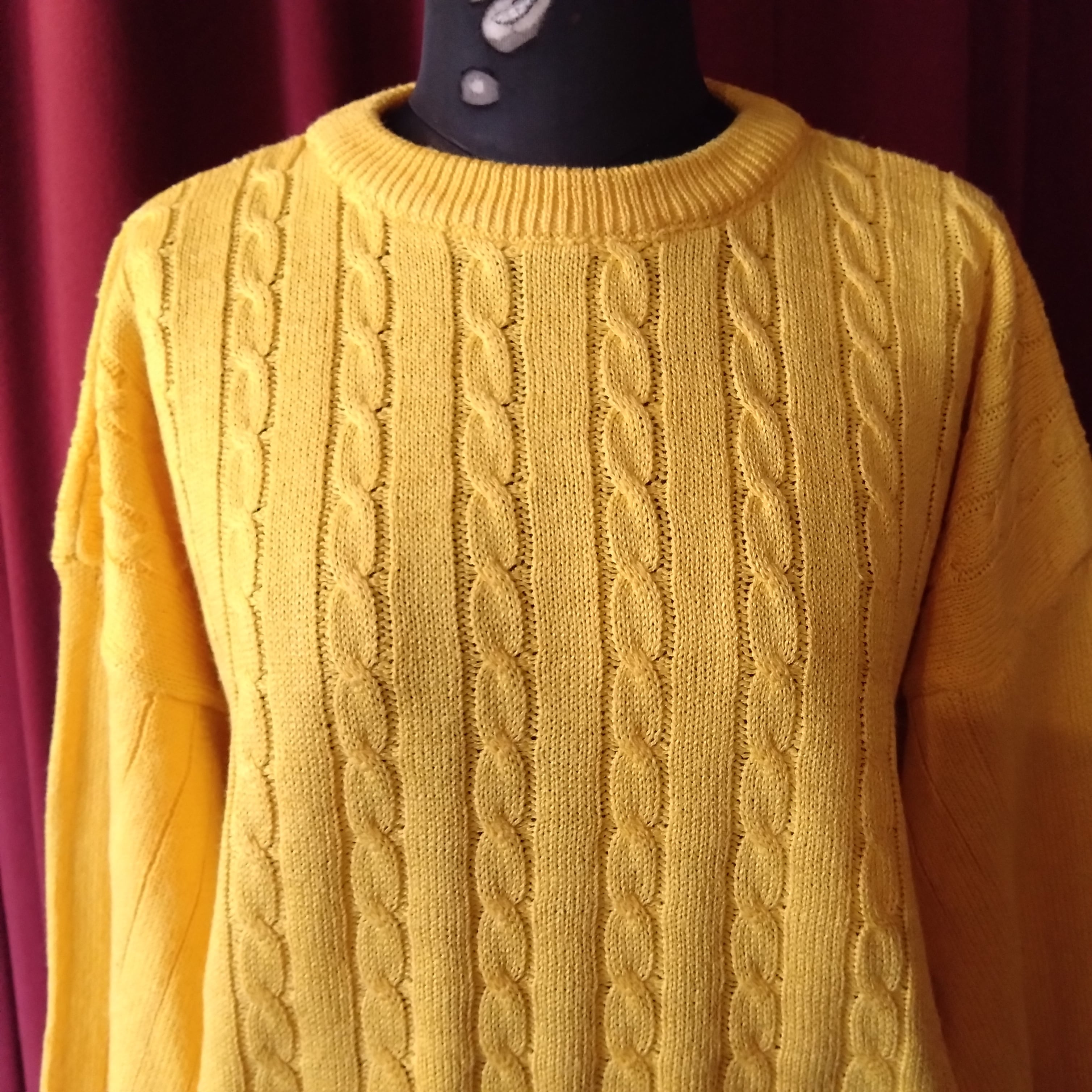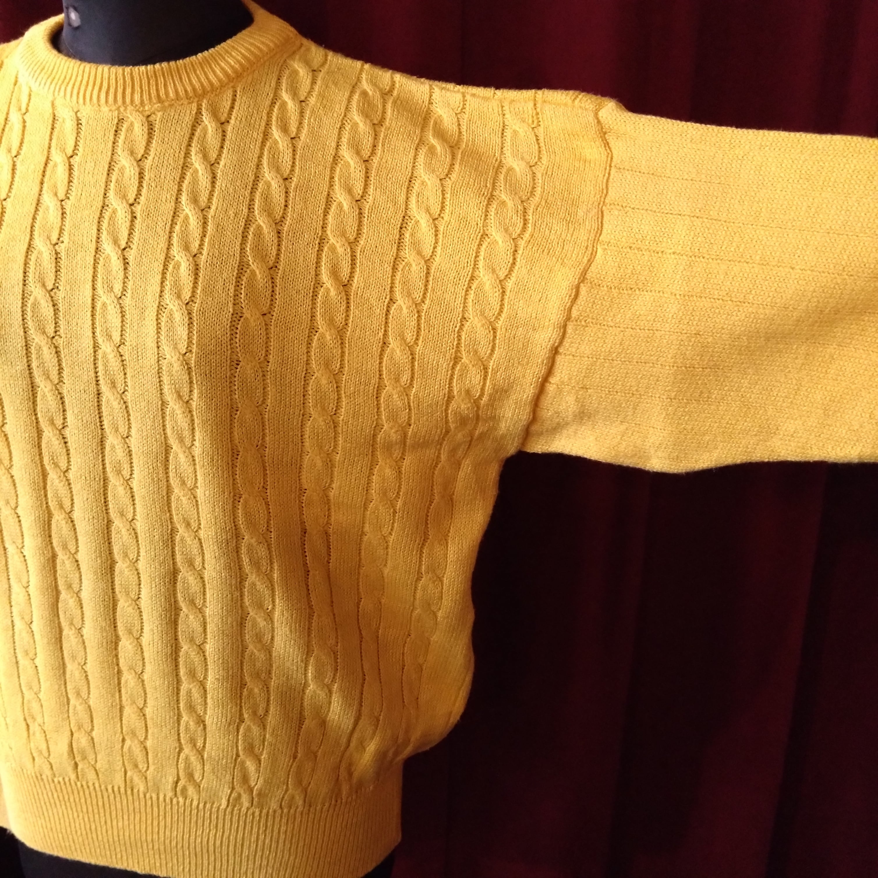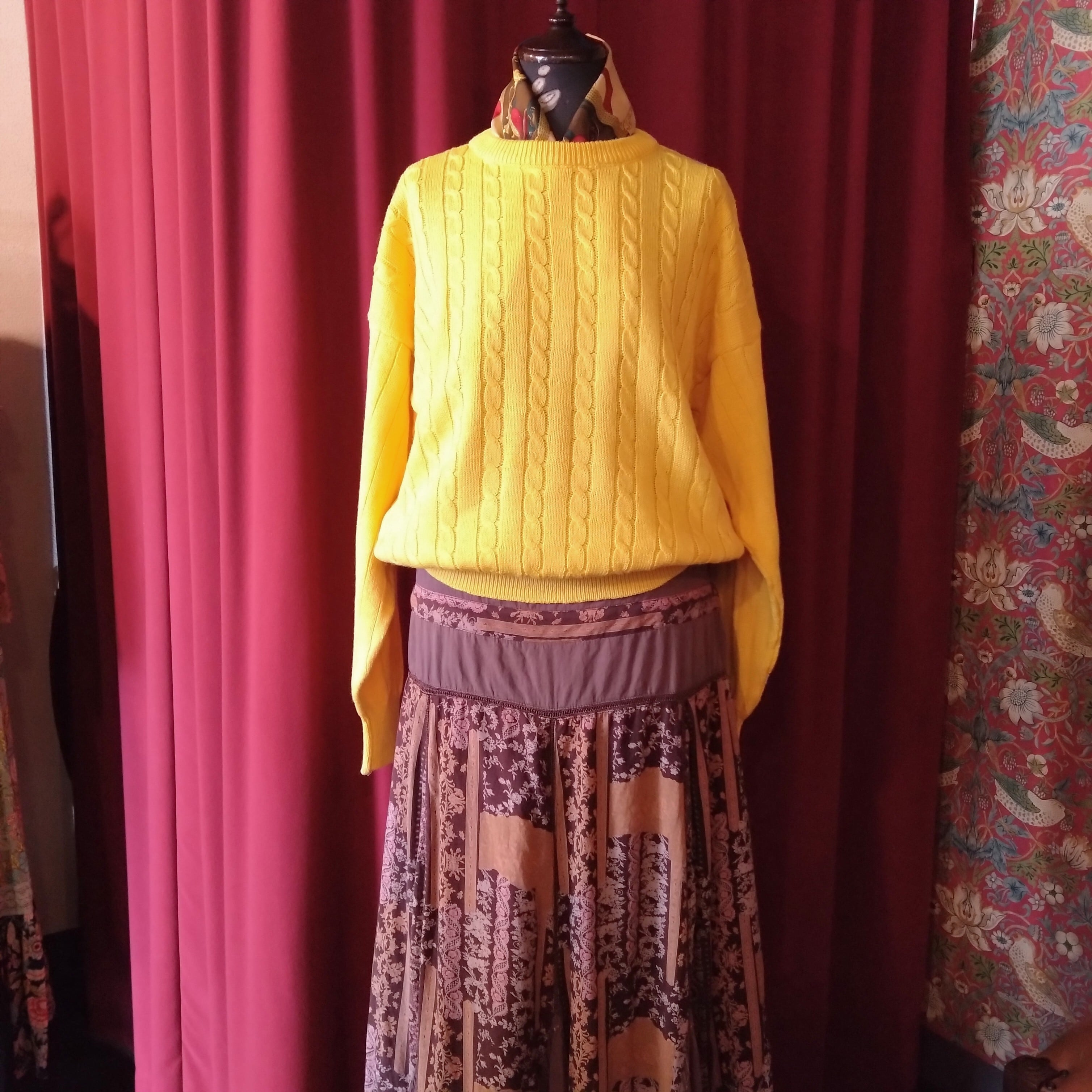 鮮やかできれいなイエローが明るい気持ちにさせてくれそうな春だけじゃなく着たいケーブル編みニット。