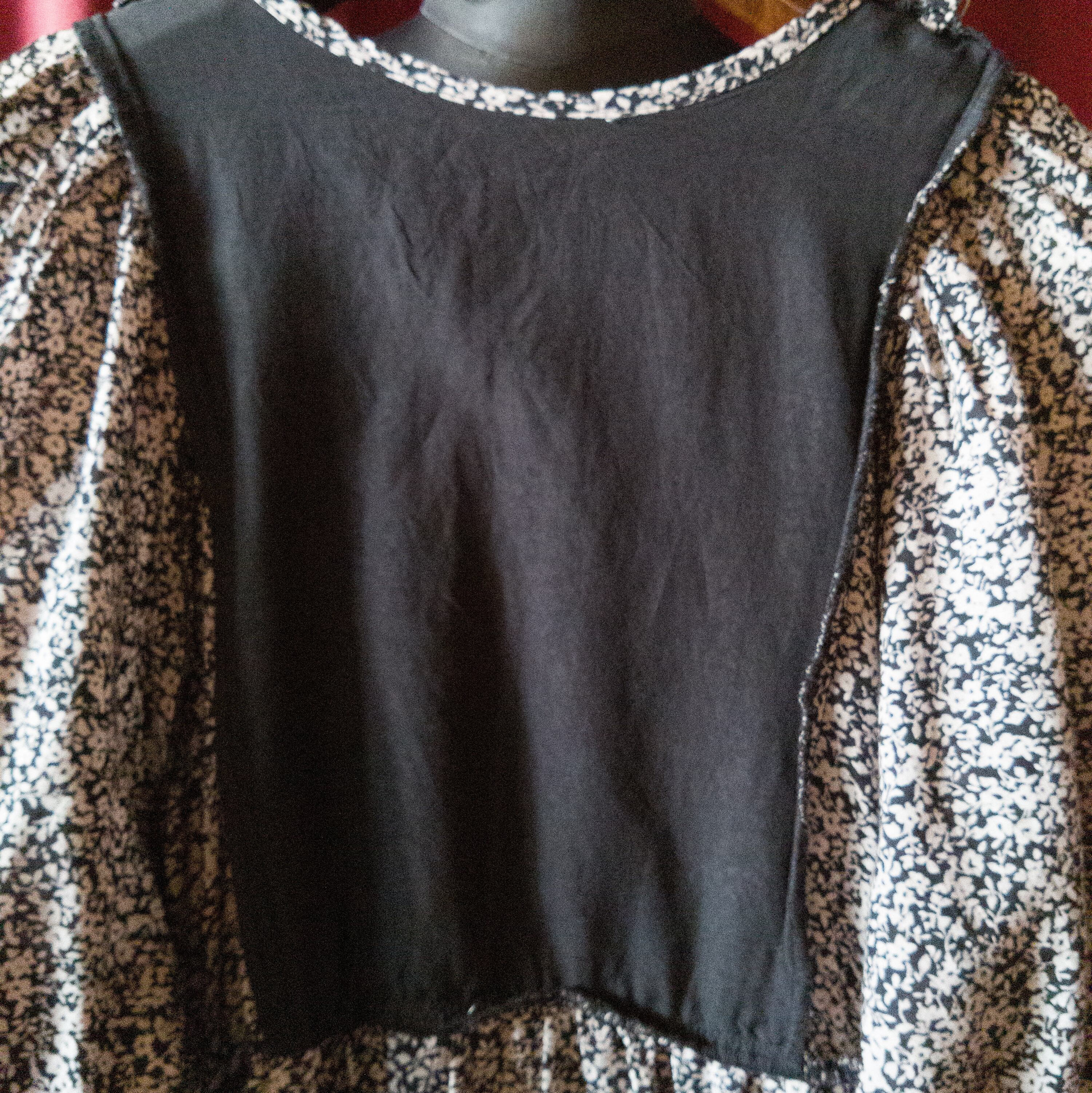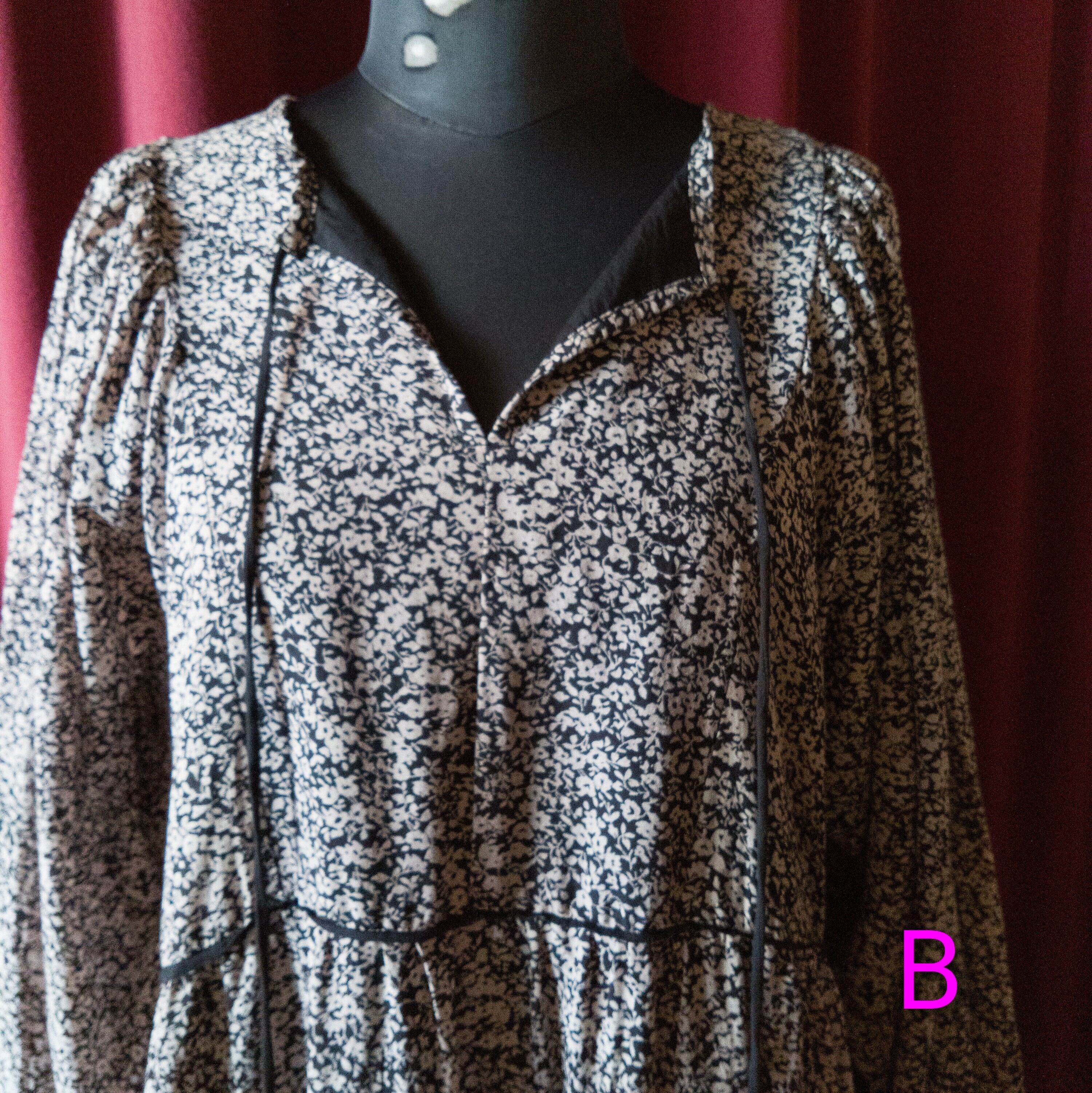 【Fanaka】モノトーンプリントパフスリーブワンピース