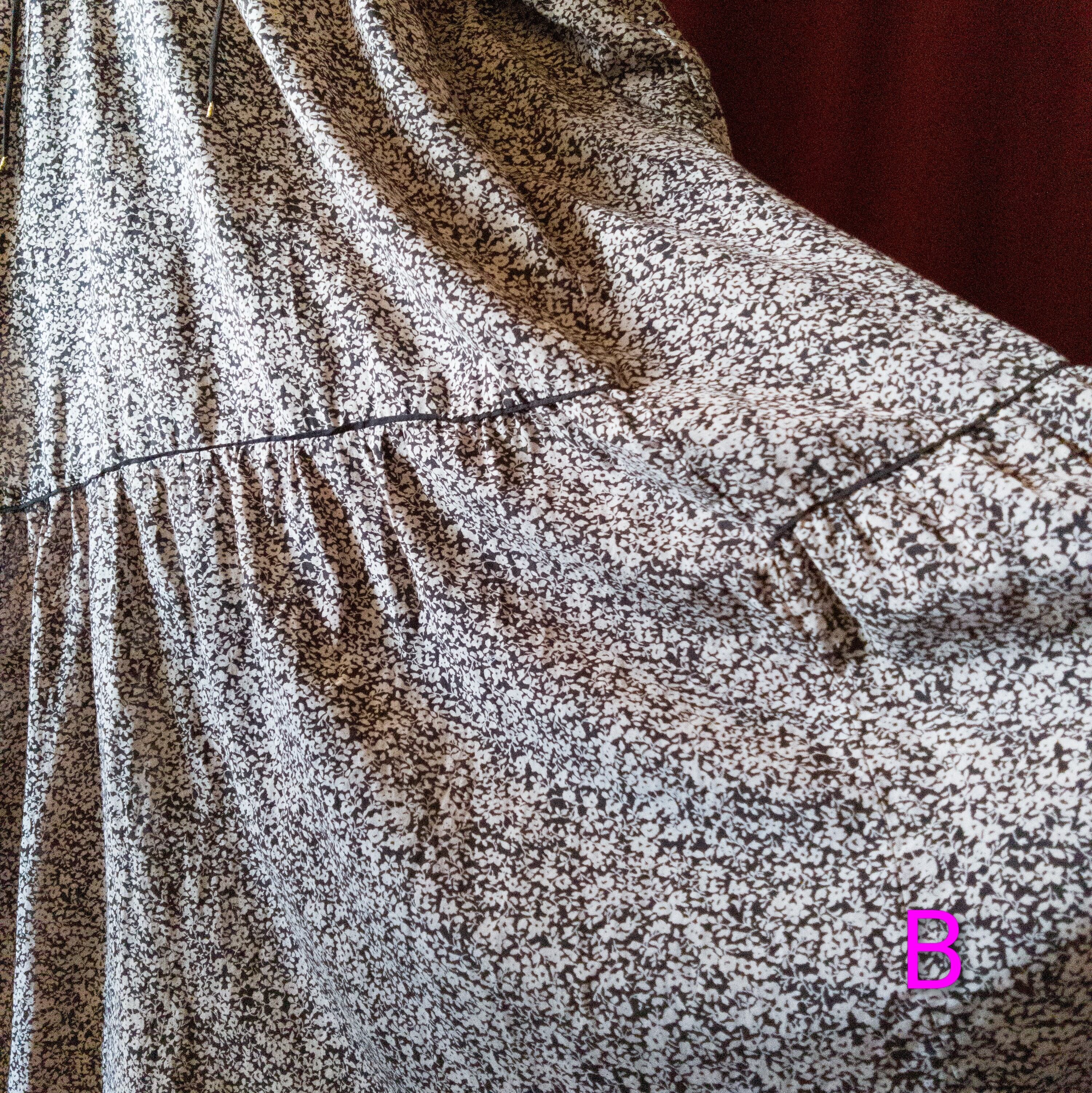 ティアード切り替えが動きのあるシルエットを生み、切り替え部分の段違いのパイピングがアクセント。