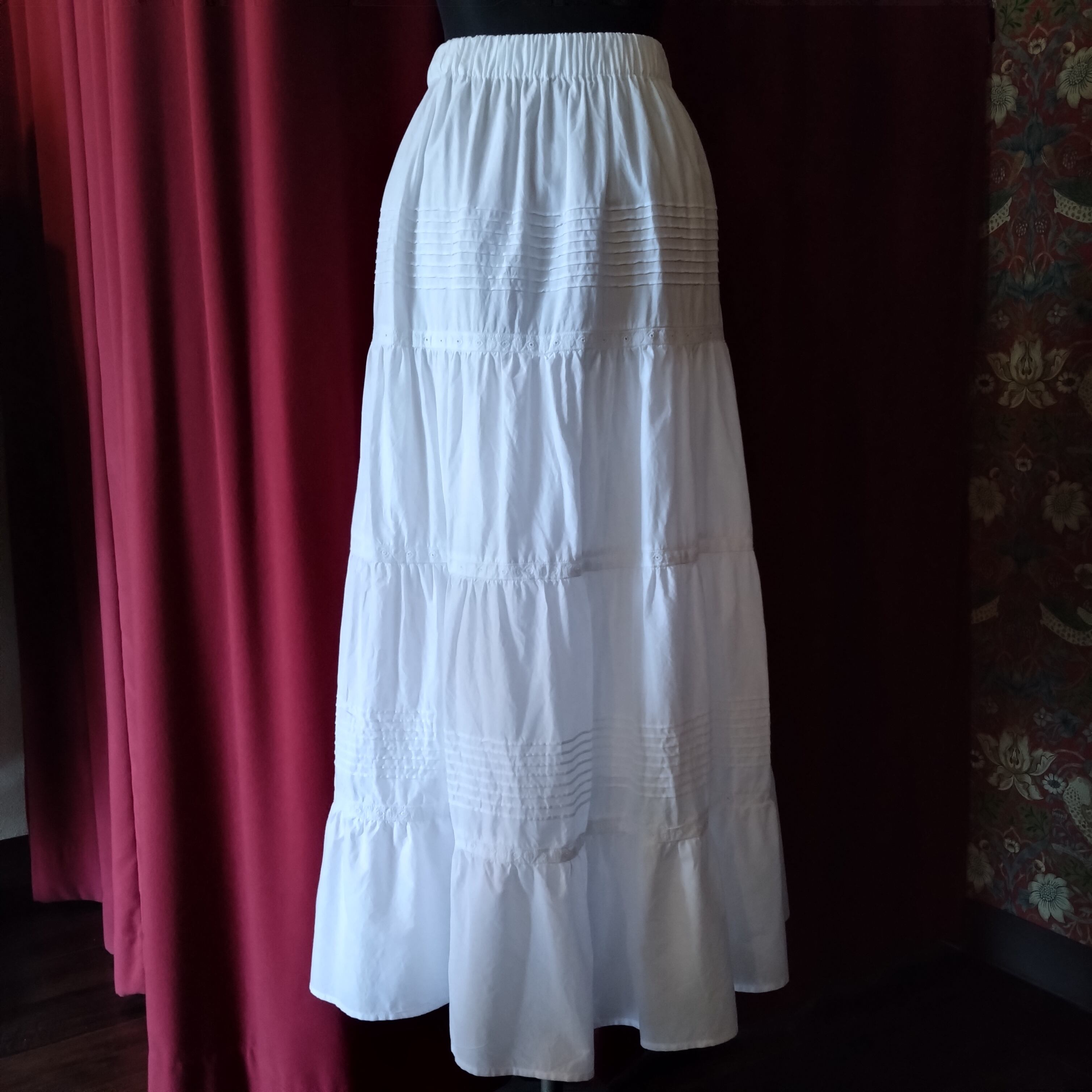イノセントな雰囲気のTchiboのホワイトティアードスカート。
