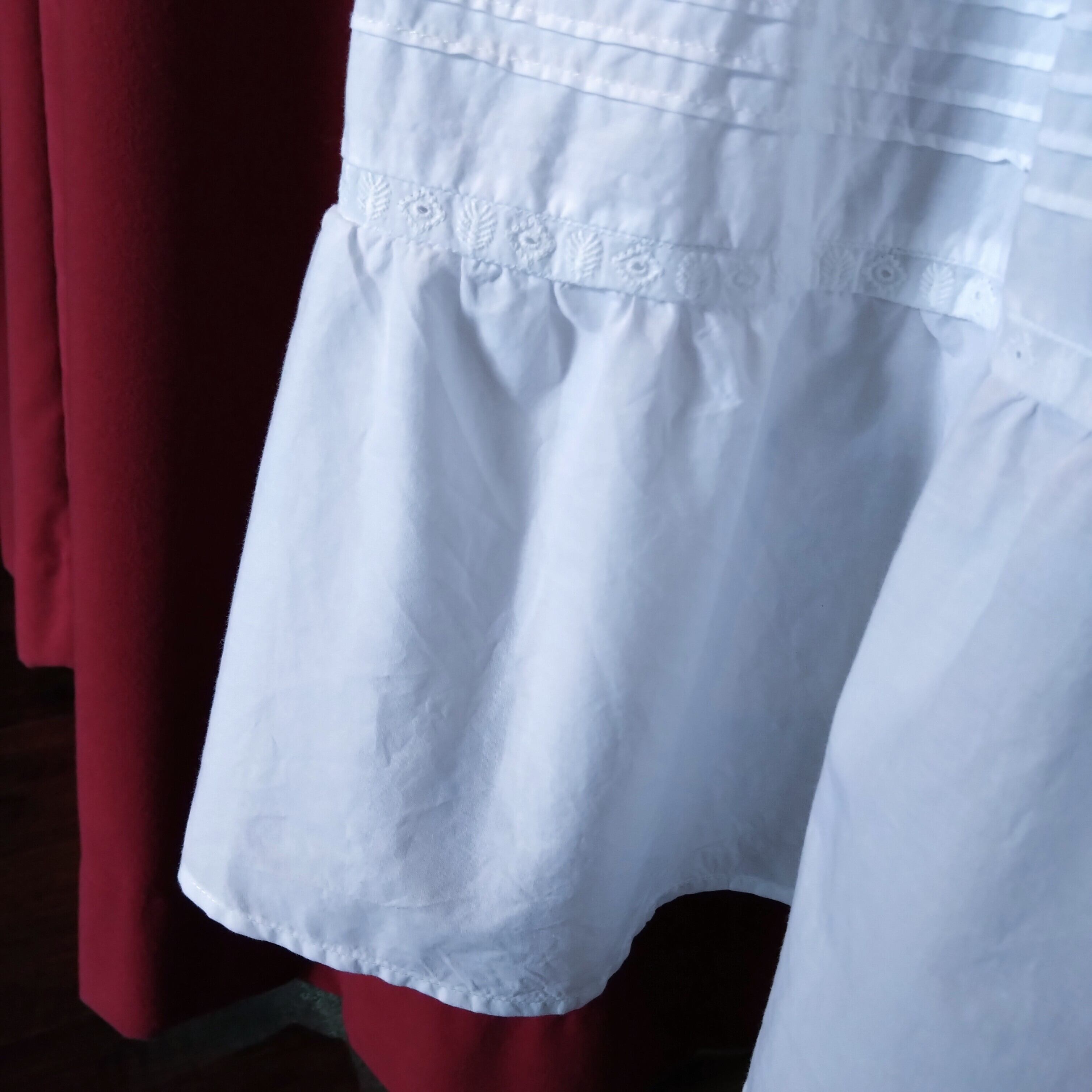ピンタックとリボンレースの切り替えで広がりすぎないシルエットに。