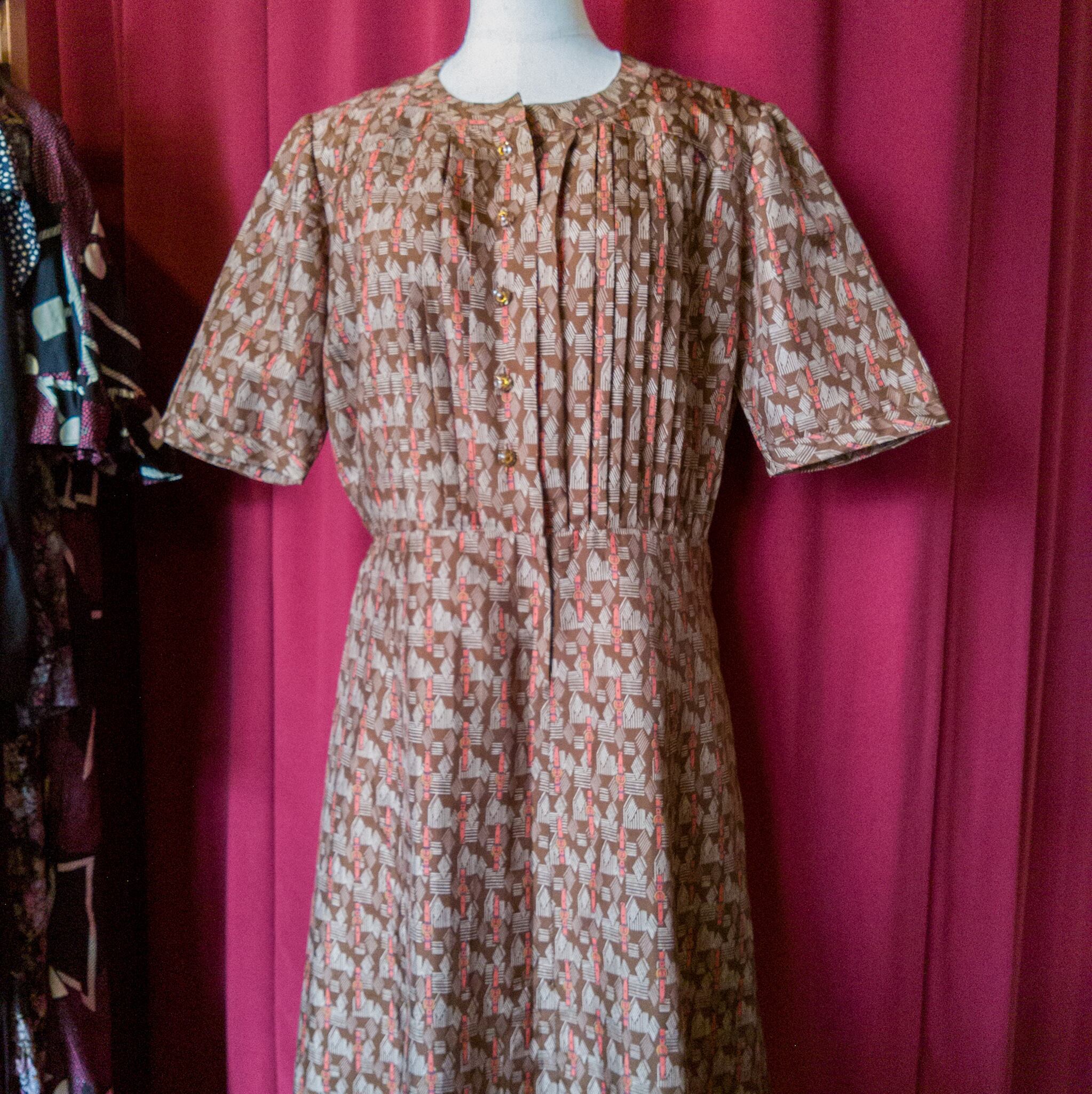 胸元のプリーツデザインが素敵なハンドメイドのワンピース。
